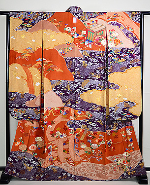 紋錦紗に波頭文が浮き出ているので、芦辺の文様とも受け取れます。