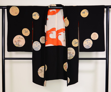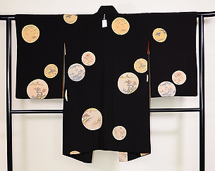 楽器文様の黒絵羽織
