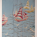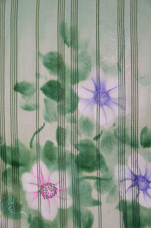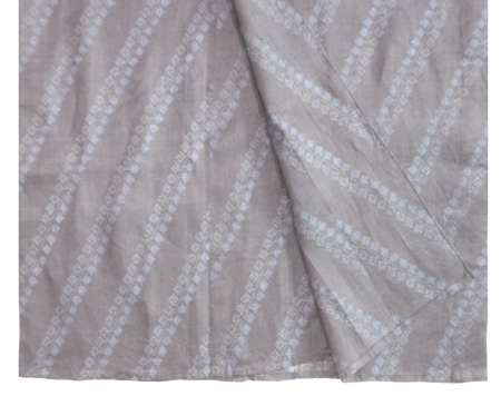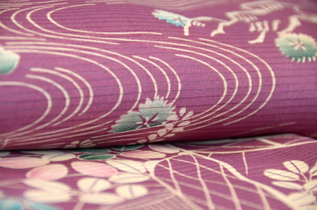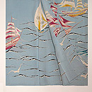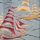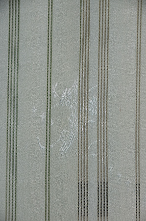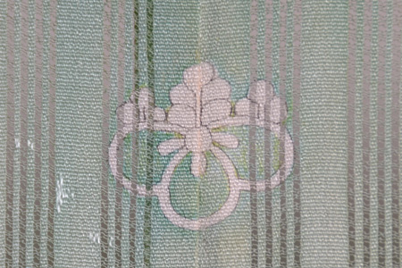 絞りと銀糸、漆糸で縦縞が構成されて、カモメが銀糸で織り出されています。