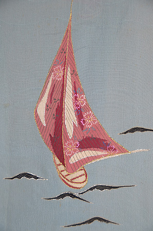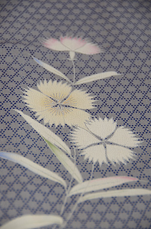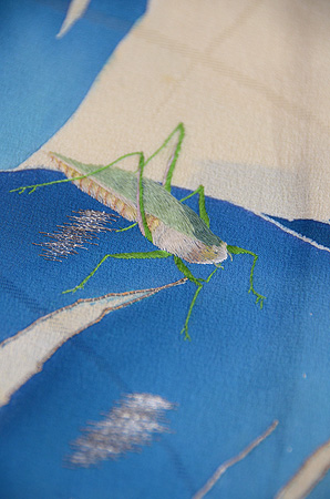 ジョーゼット地に、雨は絞り、ツバメは漆糸で織り出されています。