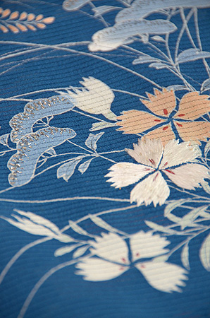 やさしい錦紗地に、秋の野の花たちがやさしく描かれています。