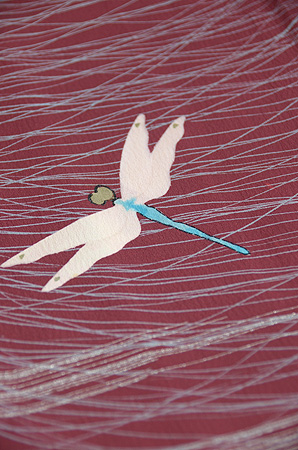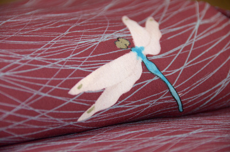 大きな蜻蛉たちが銀糸で織り出されています。