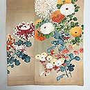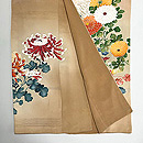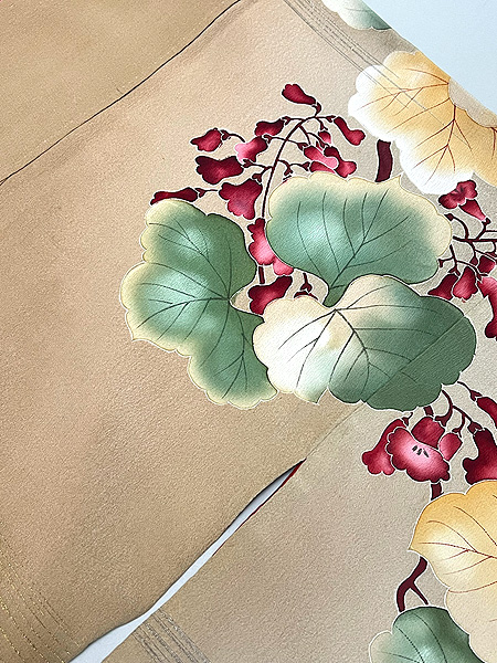 紅緑色四季の花文様単衣付下