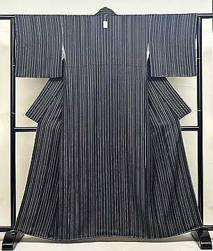 滅紫色縦絣の本場結城紬