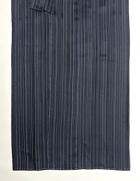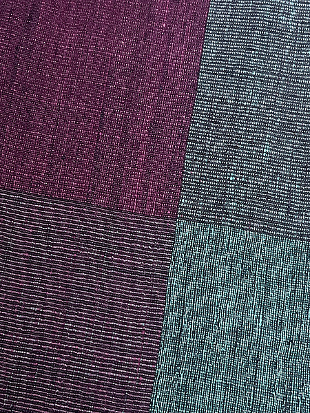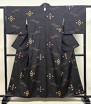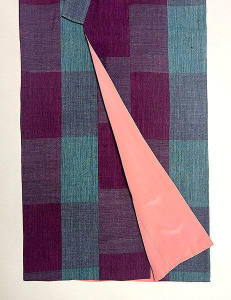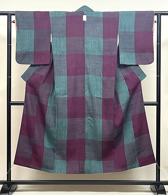 彩度を抑えた紫に、幾何学文が縦絣でキッチリとお行儀良く並んで、素性の良さが際立ちます。