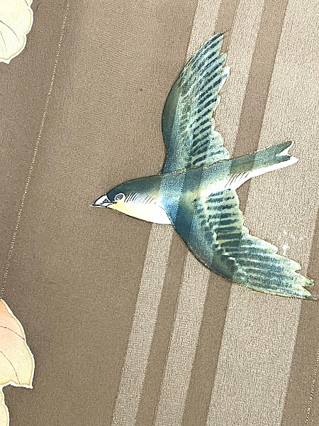 錦紗の優しい地に流水紋が透かされて、なんとも単衣の風合いはアンティークにこそですね。