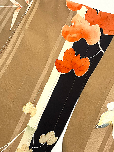 錦紗の変わり縦絽の中にチドリと波が絞りで入っています。
