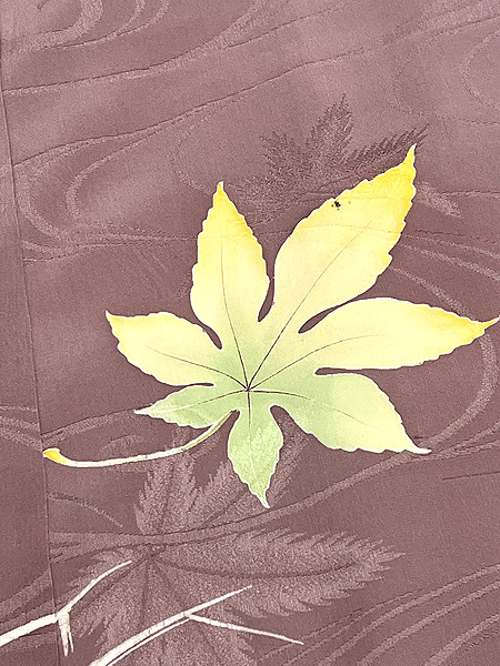御召茶という白っぽい緑の地色に葛文様がおとなかわいい単衣です。