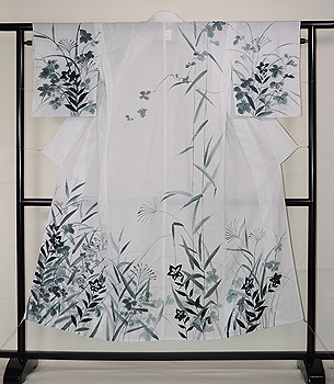 紗の地紋は秋草、かすれた横段には、御簾から窺う気配を感じます。