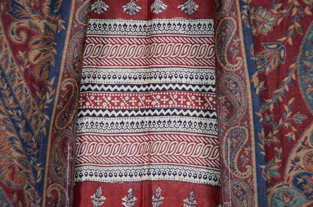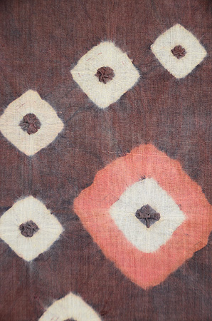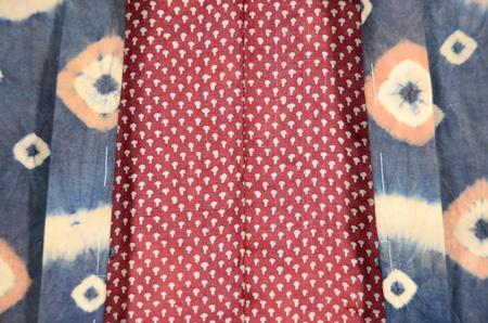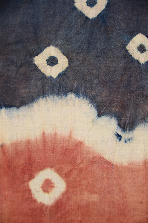 こんなにシボの荒い布に、防染糊がよくぞ入っていくものと、感心しきりで、ルーペでつくづくと眺めました。