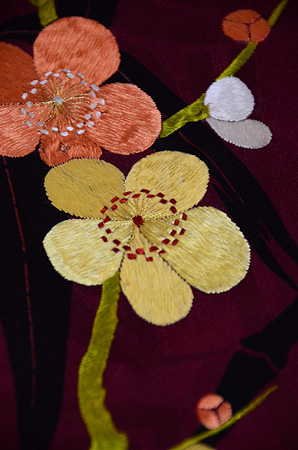 刈安でしょうか、ほんの少し彩色されて、あとは刺繍が加えられています。