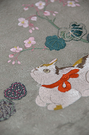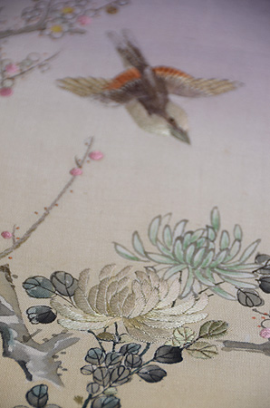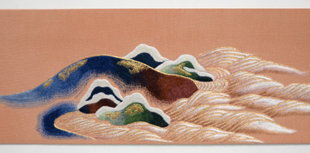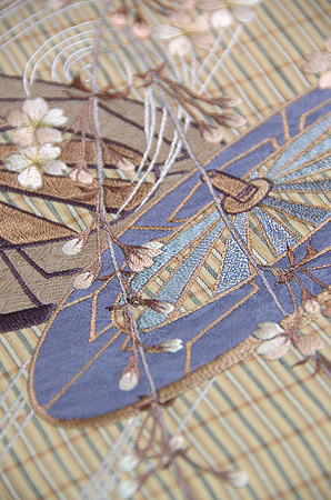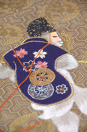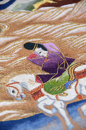絵巻に出てくる場面を想定して、という雅やかな内容の刺繍がされています。