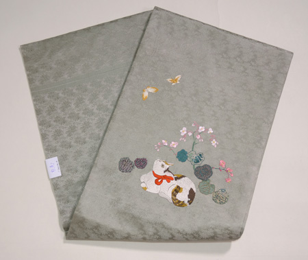 絽縮緬の手触りが優しい刺繍帯です。
