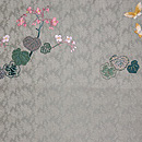 ブルーグレーの地とは裏腹に、かわいい彩色の唐織で、かわいいフルーツや木の実が織り込まれています。