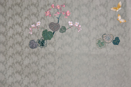 華やかな立体的な刺繍で鉄線が咲き誇っています。