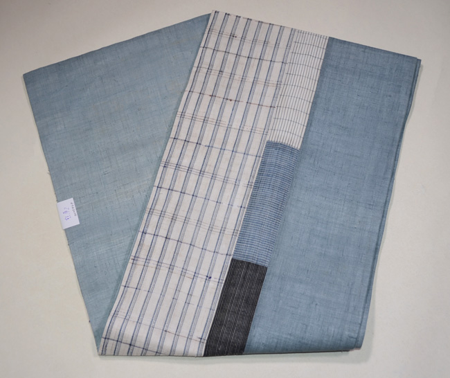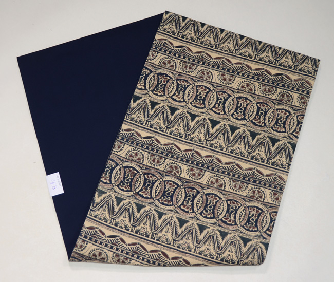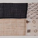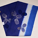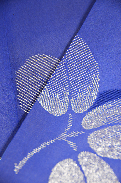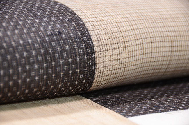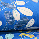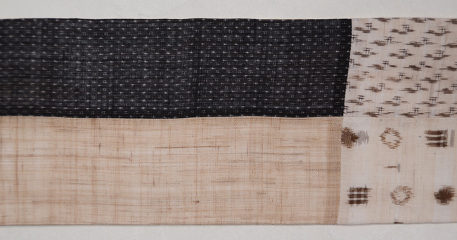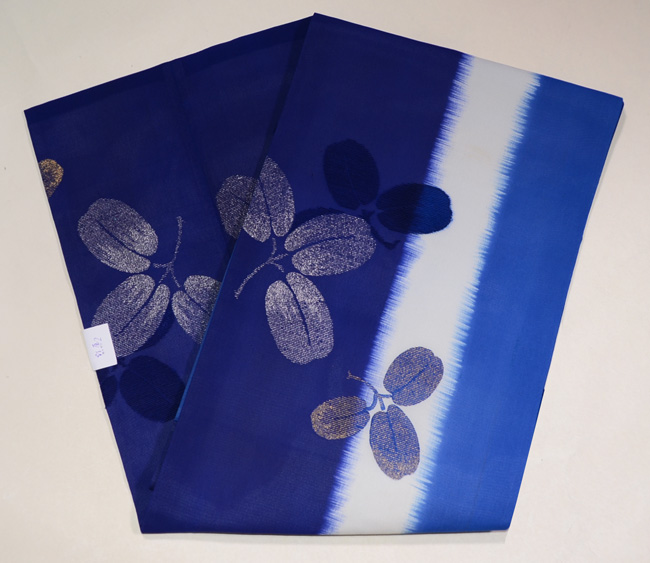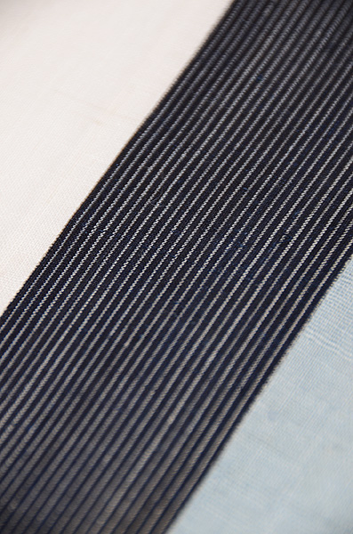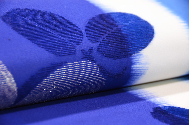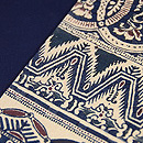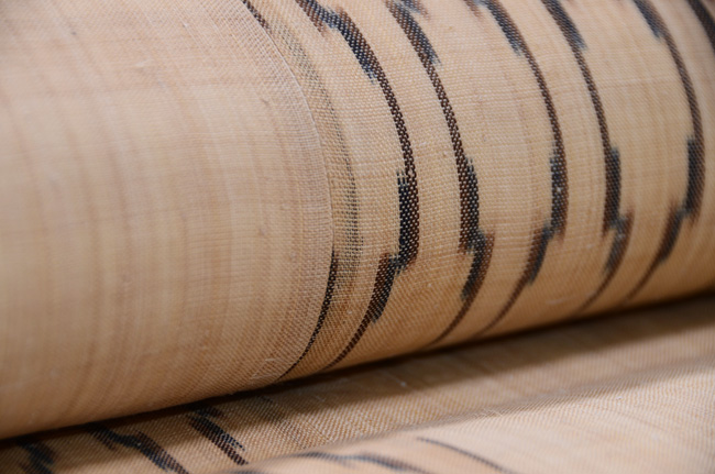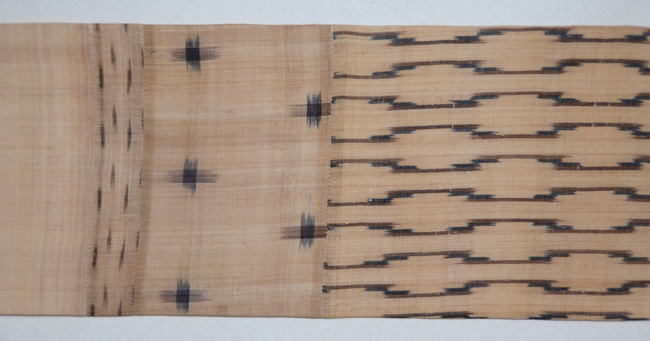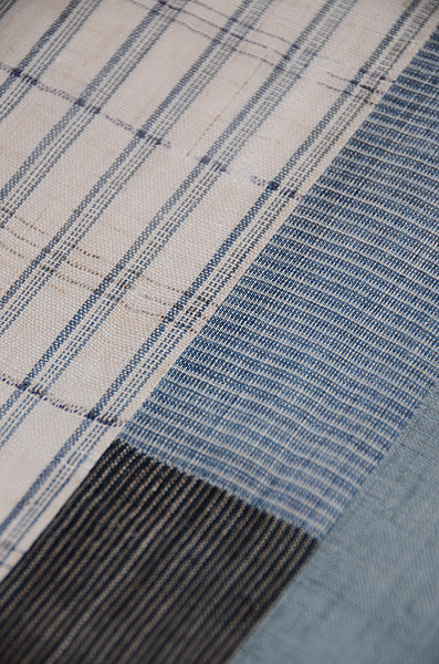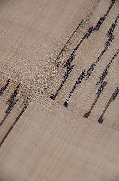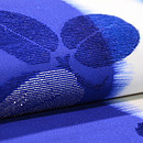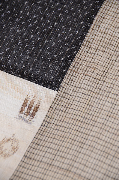 モアレのような織文様に、ロウケツ染めのような染めが重なって、複合的なおもしろいデザインになっています。