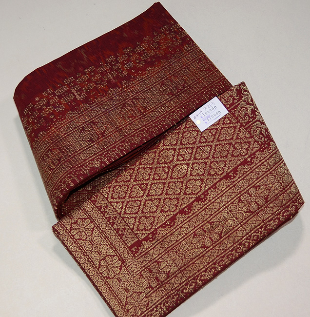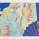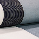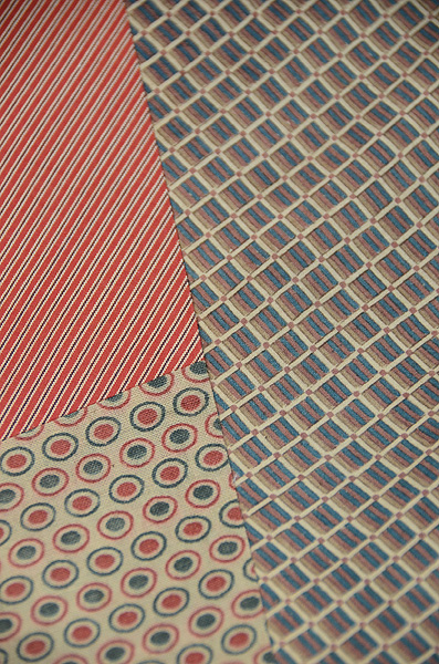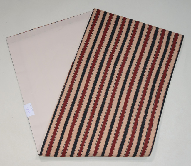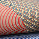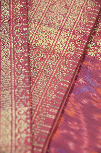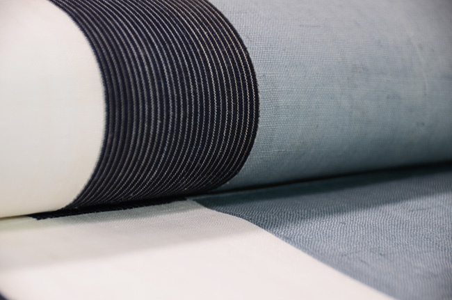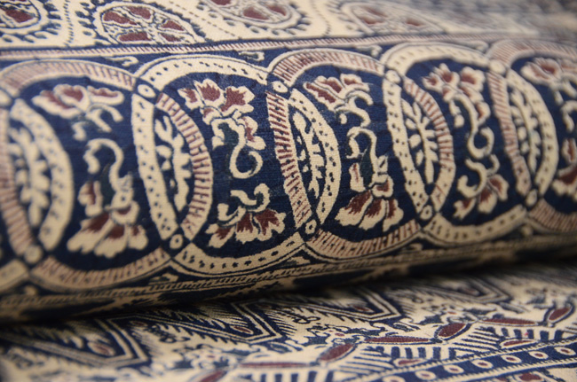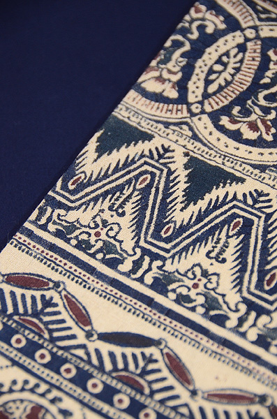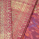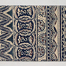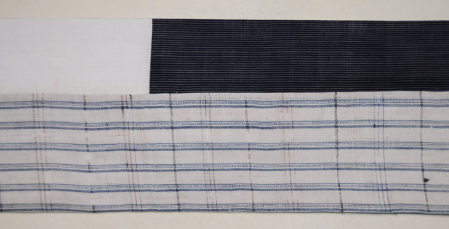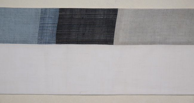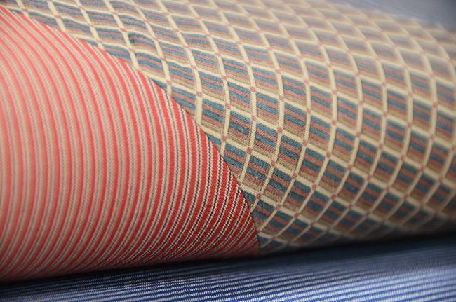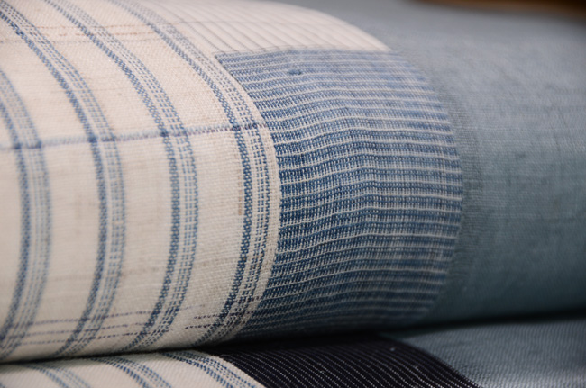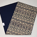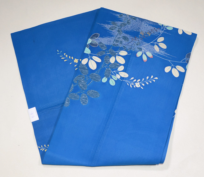 モアレのような織文様に、ロウケツ染めのような染めが重なって、複合的なおもしろいデザインになっています。