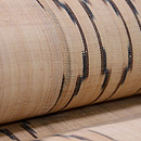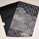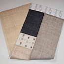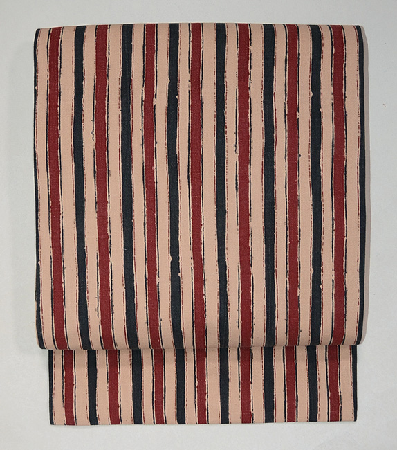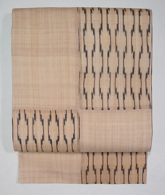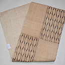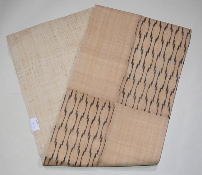 明るいベージュに、柿色と墨黒のコントラストが、茶系にも、グレーや白地の紬にも合わせられるお使い勝手の良い帯ができました。