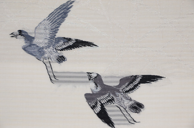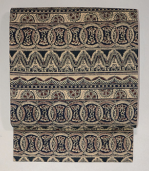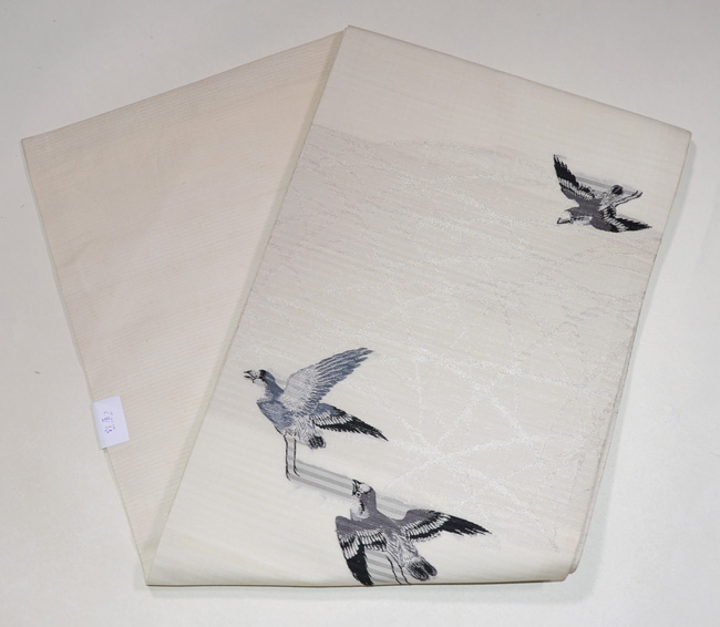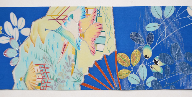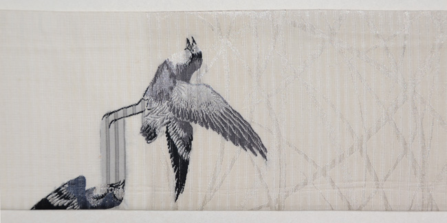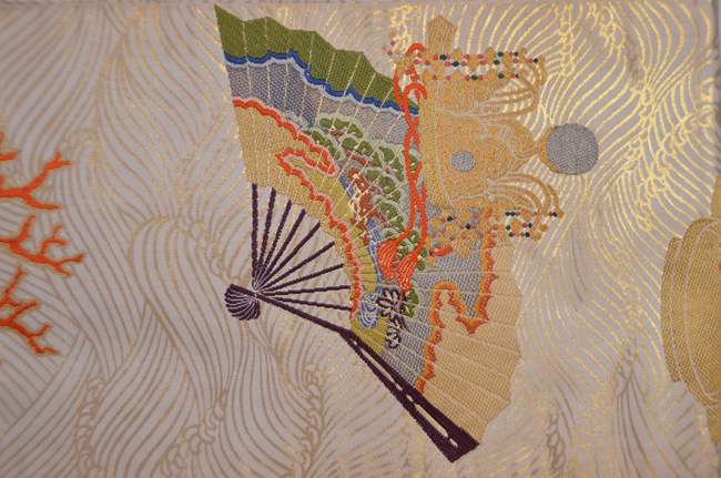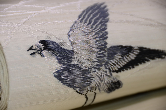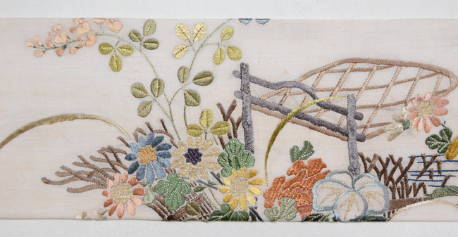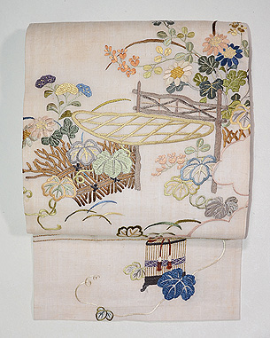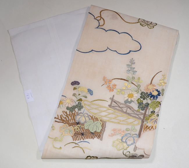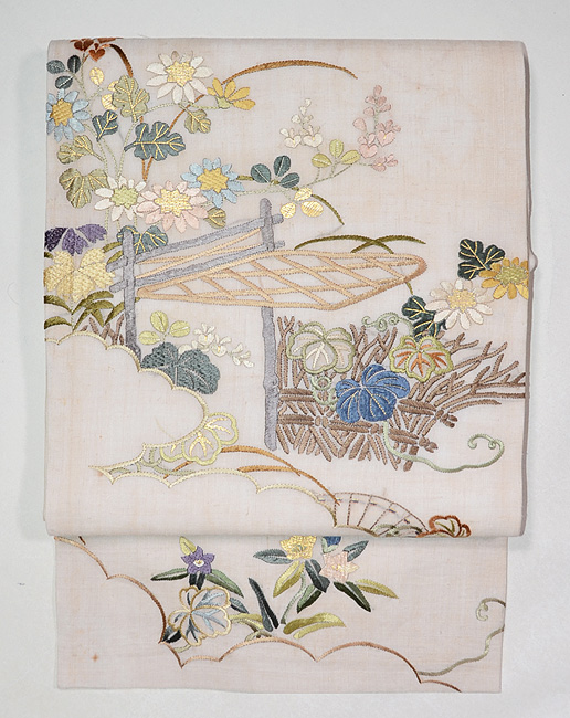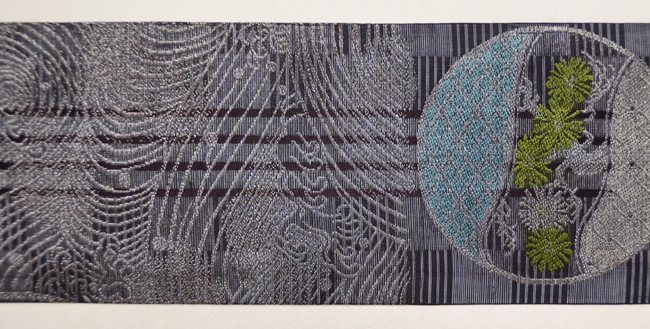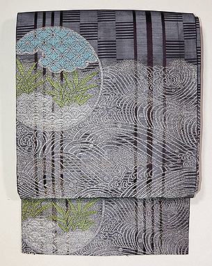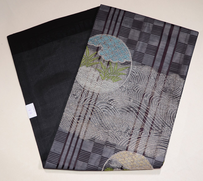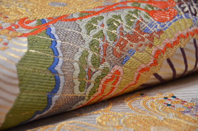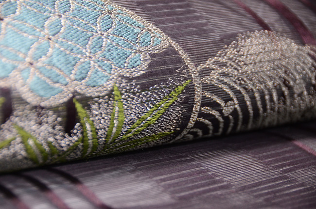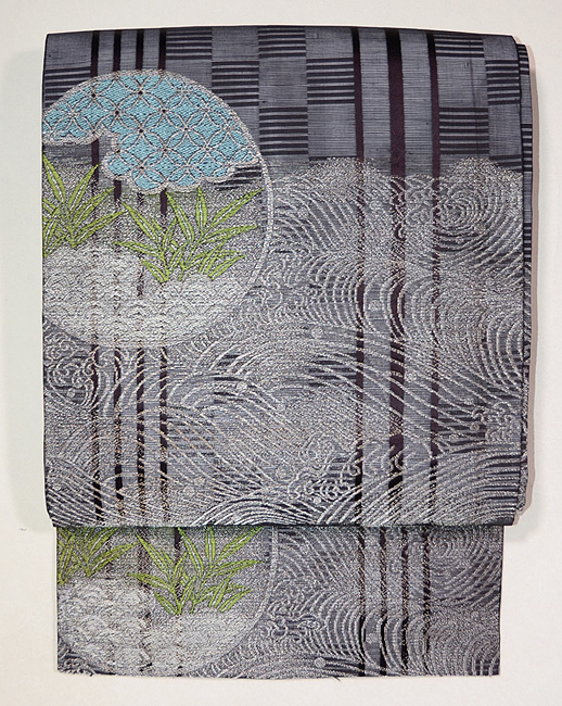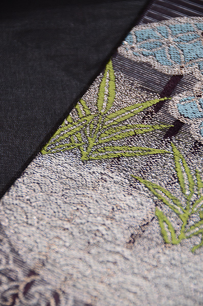 背景には竹の地紋が縦に走って、丸帯らしい重層的な重みを見せています。