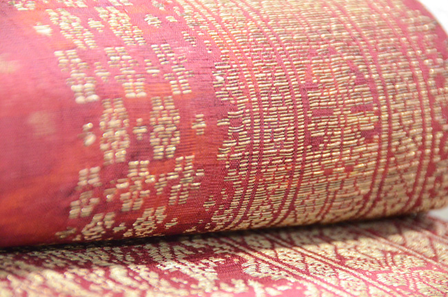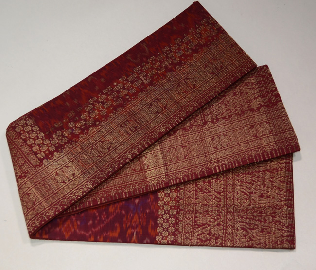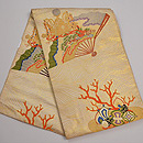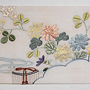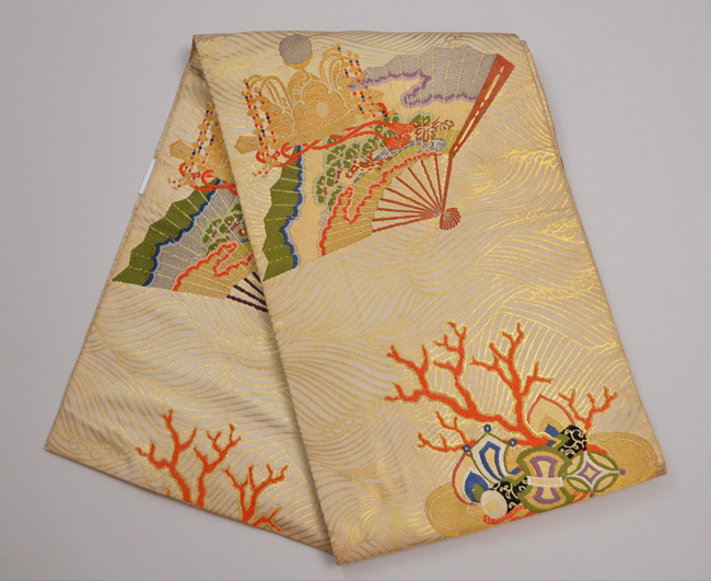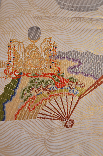 七色の糸が織り込まれて、菊の紋様がかわいい丸帯です。