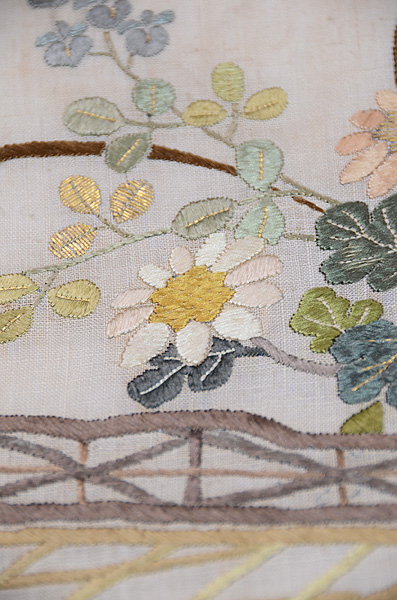 表情からも、満足気な様子が見えて、闊達な刺繍の妙味が伺える作品となっています。