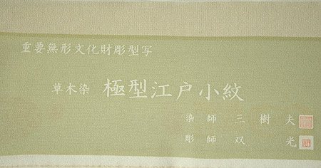 草木染めによる万筋の江戸小紋です。 淡い若草色が涼しげに、また紬とは一味違ったはんなりとした雰囲気を演出してくれるでしょう。 染師 三樹夫氏、彫師 双光氏の作品です。 着物09-5-23の江戸小紋単衣とは色違いの袷になります。