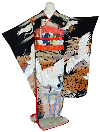 こちらの着物に描かれた丹頂鶴の大きさは、当店の婚礼衣装の中で1・2を争うほど。