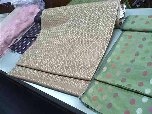 たくさんの布の中から素敵な帯に仕上がりそうなものを探しだし、メートル単位で仕入れます。