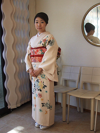 秋のお祝の席に めっきり涼しくなり、ご参列のお客様のお姿も、透け感のある夏のうすものから秋のしっとりとした装いにかわってまいりました。 とはいえ、この日はまるで真夏が戻ってきてしまったような陽気! 秋とはいえ、こんな日もあるのが9月。 お着物の色は小さなばらを散らした薄いピンク色のものをお選びになり、逆に帯には重厚感のあるアンティークの丸帯とこっくりと秋らしいお色の小物。 ヘアやメイクはシンプルにまとめられ、まるで秋風が立っているかのうな涼しげなお顔でお出かけされていかれました。 吉田
