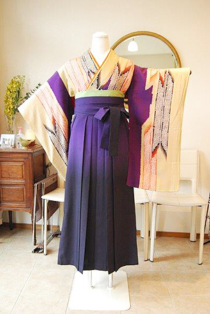 左上:ベージュ地疋田矢羽文様 レンタル一式 50000円