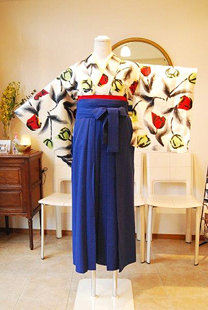 右下:白地チューリップ銘仙 レンタル一式 50000円