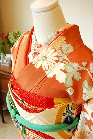 こっくりした茶色の色合いと、菊や鶏頭の花々によって深まる秋をイメージさせます。