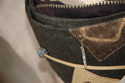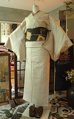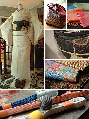 4. 結城紬+アフリカラフィアパッチワーク名古屋帯 78750円 (写真:右中段)