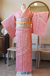 お花をかたどった絞りの文様は、桜、梅、菊とそれぞれ違いますので、一年を通してお召いただけますが、まずは春のお出かけを楽しみたい気分になりますね。