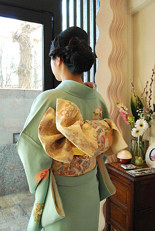 片流しの帯結びでより華やかな装いとさせていただきました。