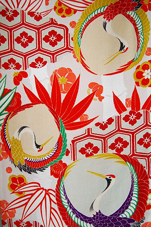 羽根を広げて円を描いた伝統文様「鶴丸紋」。