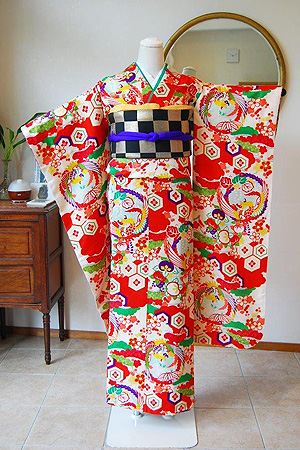 そんな鳳凰が羽根を丸く広げた姿が印象的なこちらのお着物。