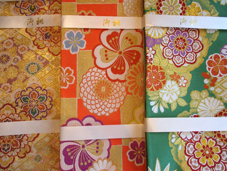 帯が多数入荷しました! 桜や菊花、捻子梅などの花文様、花菱文、宝華文、宝文などの吉祥文様を中心に、古典柄の西陣織袋帯が新入荷しました。 全て正絹の帯です。 当店のシステムは、まず着物を選んだあと帯や小物やお好きな物をみて頂き、お値段はセット料金のみで変わりませんので安心してお好きなものをお選び頂けます。 最近人気の赤や緑など白地以外の帯もございますので、振袖や訪問着に合わせてお好きなものをお選びください! こちらの帯はご購入も可能です。 帯販売価格58,000円~154,500円