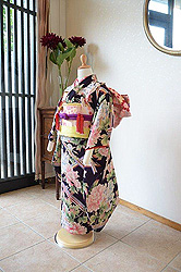 七五三の晴れ着といえば赤やピンクが思い浮かびますが、当店ではこんなシックな着物もございます。