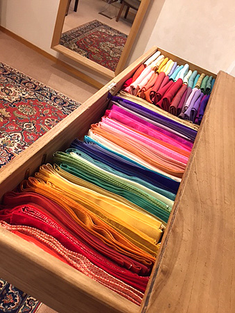 秋色小物、揃いました! 日に日に秋の気配が深まりつつあります。 店内の引き出しも、秋色の小物が揃いました。 着物や帯はもちろんのこと、帯あげや帯締めといった脇役達にもきちんと秋の色を使い、旬の装いを心ゆくまで愉しみたいものですね。 菊池