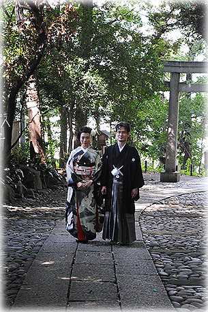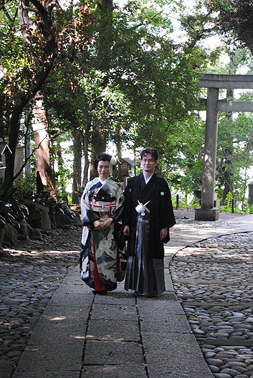 挙式当日は当店にて着付け、ヘアメイクをさせて頂き、近くの代々木八幡宮へ。