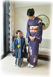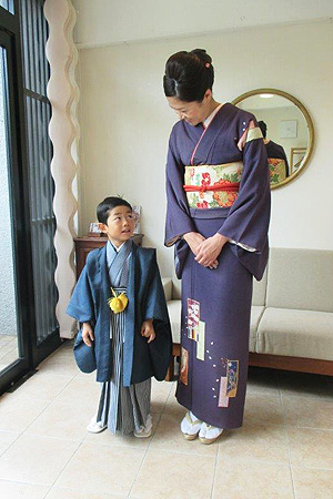 仕上がった際には、はにかみながらお母様に着物姿を見せに行ったお坊ちゃま。