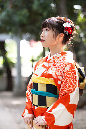 つまみ細工の髪飾りに、赤いラインを効かせたメイク、随所にお客様ご自身のこだわりを感じさせていただきました。