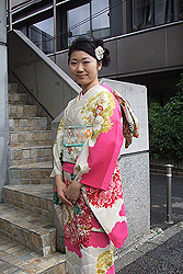 華やか夏の中振袖 ご友人様の結婚式にご参列されたお客様のご紹介です。 受付をされるとのことで、華やかな着物をお選びになりました。 桃色の雲取文様がはっと目を引くアンティークの夏の中振袖です。 帯もアンティークの夏の丸帯を合わせました。 可愛らしいお顔立ちにとてもよくお似合いでいらっしゃいます。 受付をされる場合、机で胸から上だけが見える状態になりますので、このように肩周りに色や文様がある着物が目に鮮やかでおすすめです♪ 最近連続して結婚式にお呼ばれされているとのこと。 素敵なお人柄ゆえでしょう。 この度はご利用ありがとうございました。 代々木店 冨永