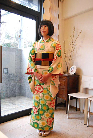 市松文様の袋帯を合わせて、レトロでキュートに☆
