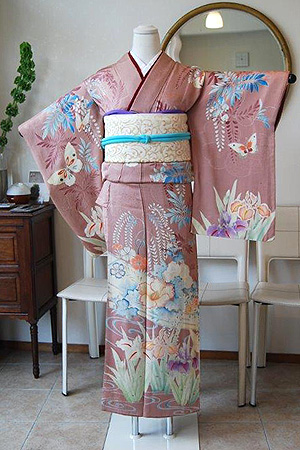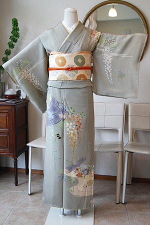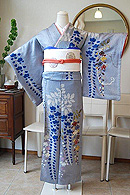 桜に続いてお召いただきたいのが、藤の着物。