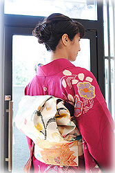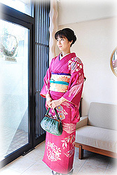 お召し頂いたのは、マゼンタ色のような赤紫の発色がひときわ華やかな訪問着。