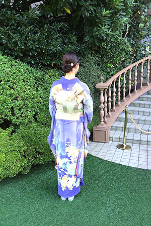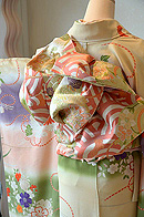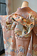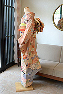 袷の振袖は、袖も長い分、肩にどっしりと重みを感じますが絽縮緬は素材もやや透け感があるため、とても軽やかにお召いただけます。