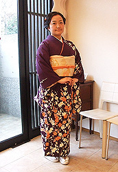 数枚ご試着頂いたのですが、中でも紫色が本当にしっくりとお似合いでいらっしゃって、 袖を通して頂いた瞬間、私だけでなくスタッフ皆が「これをお召し頂きたい!」と思ったそうです(笑)。