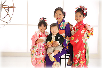 当店では3歳、5歳、7歳の着物の他に、ご兄弟(3歳~10歳男の子)、ご姉妹(2歳~12歳)の着物もご用意しております。